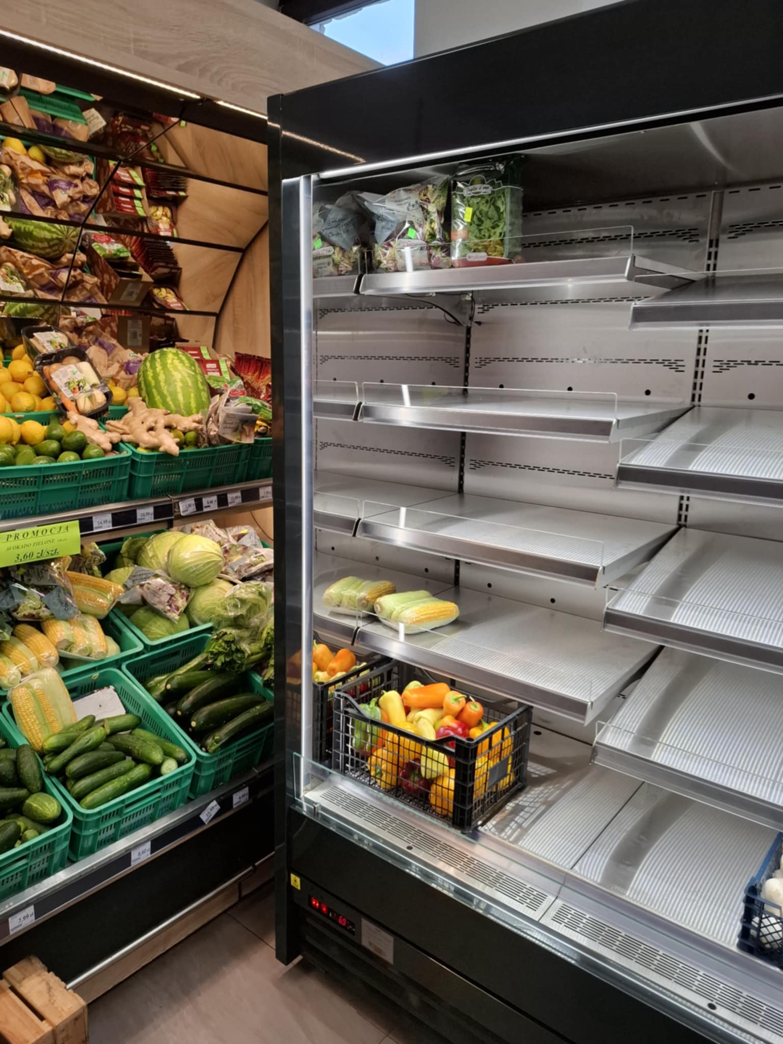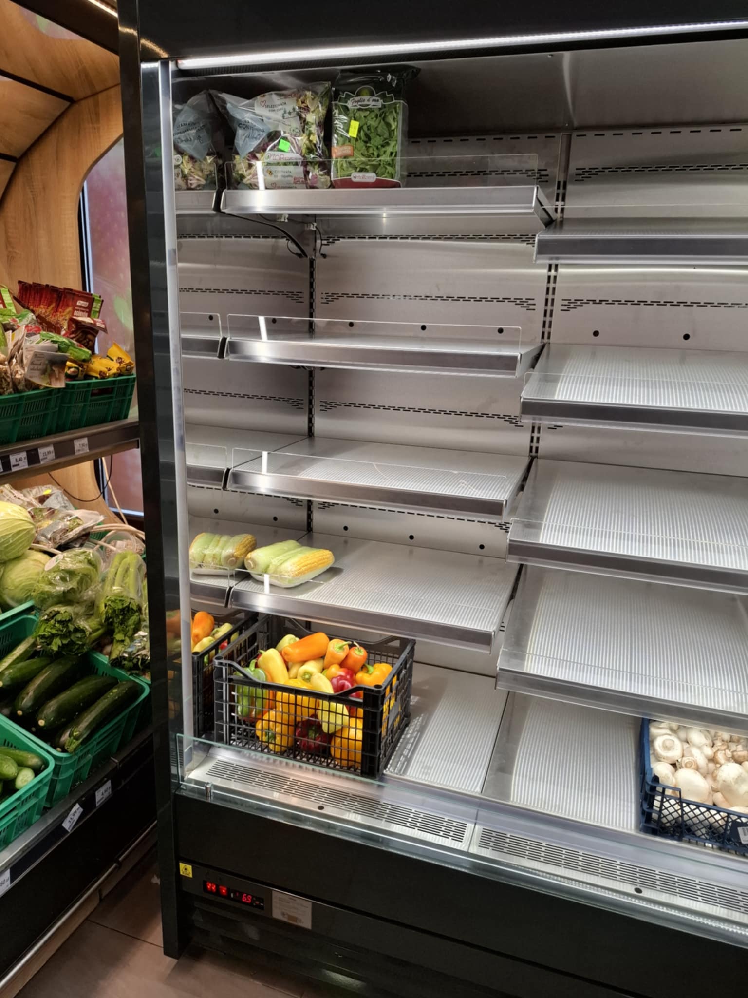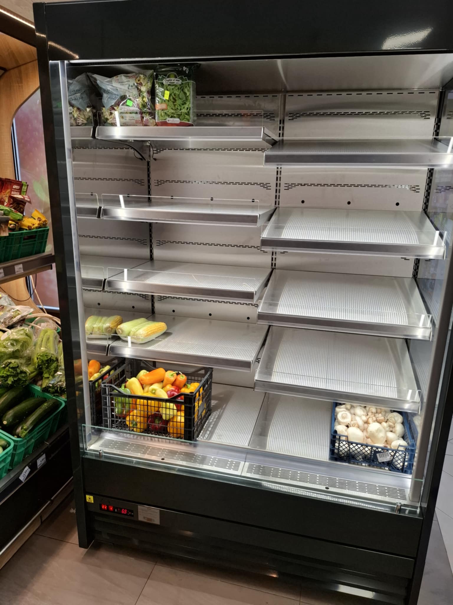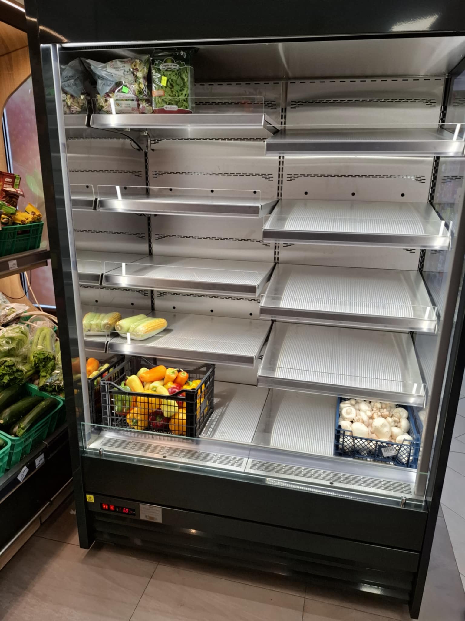 VARMELLO RCH-5 NA WARZYWA - agregat wewnętrzny - długość 1340 mm Półki regału z ogranicznikiem - STAL KWASÓWKA - - PODSTAWA + 4 poziomy 4 rzędy - ograniczniki mogą być z plexi ! BOKI REGAŁU : STOJĄC NA WPROST DO REGAŁU OD I PATRZĄC OD FRONTU PRAWY BOK REGAŁU ZE SZKŁA A DRUGI LEWY METALOWY WYKONANY Z BLACHY POLEROWANEJ NA LUSTRO Z BLACHY H-17 Podświetlenie każdej półki Kolor światła proszę 4000 K lub 4500 K Głębokość 815 mm Wysokość 2010-2030 mm Regał otwarty z roletą, zewnątrz antracyt wewnątrz stal H18, głębokość 815, boki JAK WYŻEJ, półki stal H18 ograniczniki w cenie i listwy w cenie